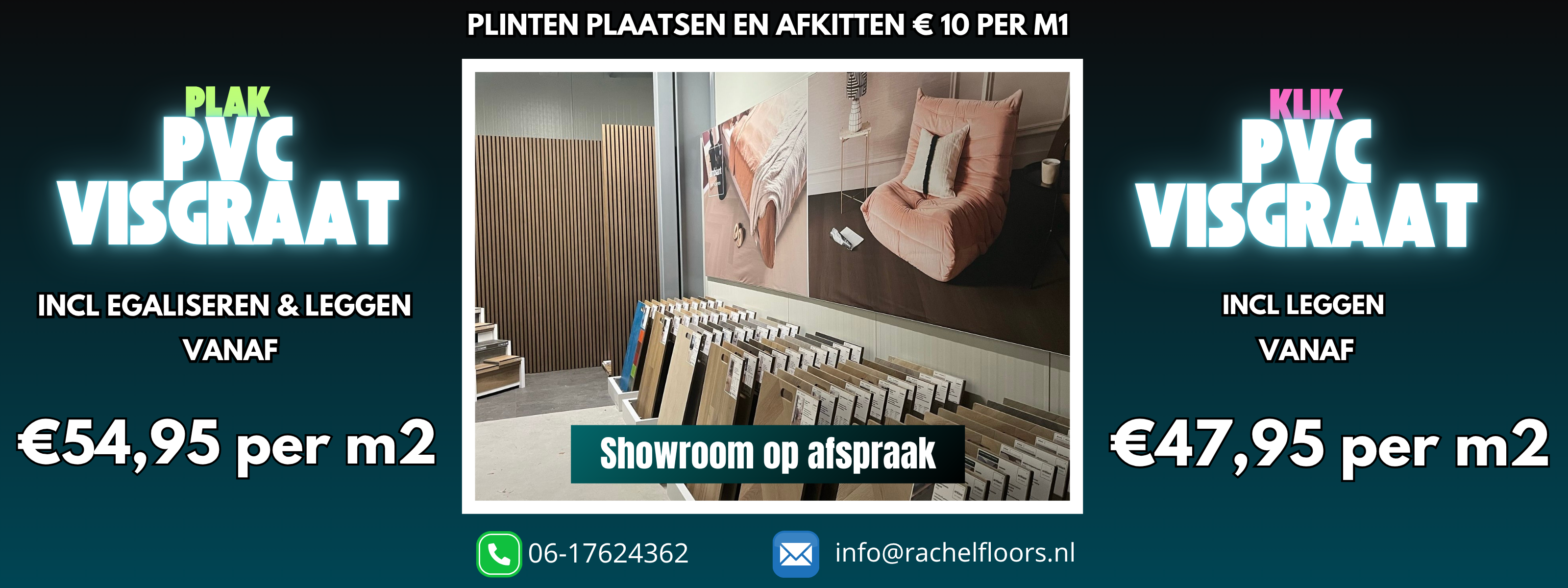 Al onze producten zijn ook te bekijken in onze showroom. Maak een afspraak via whatsapp of per mail: info@rachelfloors.nl